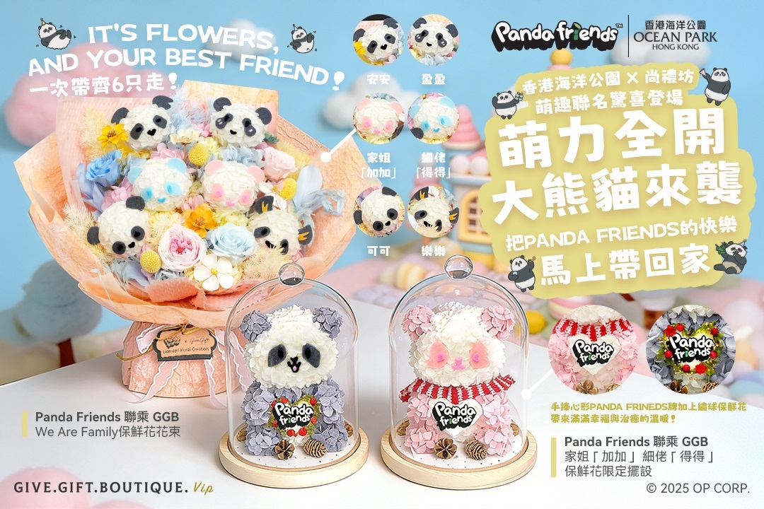 Ocean Park Hong Kong has partnered with GIVE.GIFT.BOUTIQUE to launch the "Panda Friends" flower gift collection feat older sister Jia Jia and little brother De De. Recreating the adorable Jia Jia and De De with delicate petals and paired with a dedicated tag, this panda gift transforms the charm of the giant pandas into a timeless and romantic gift, preserving your love for the giant pandas. It's the perfect choice for a cute collection or a heartfelt token of your affection.