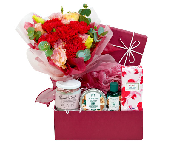 此母親節禮物盒連鮮花小花束 MSC01 共有 5 件Items(包括包裝籃) .